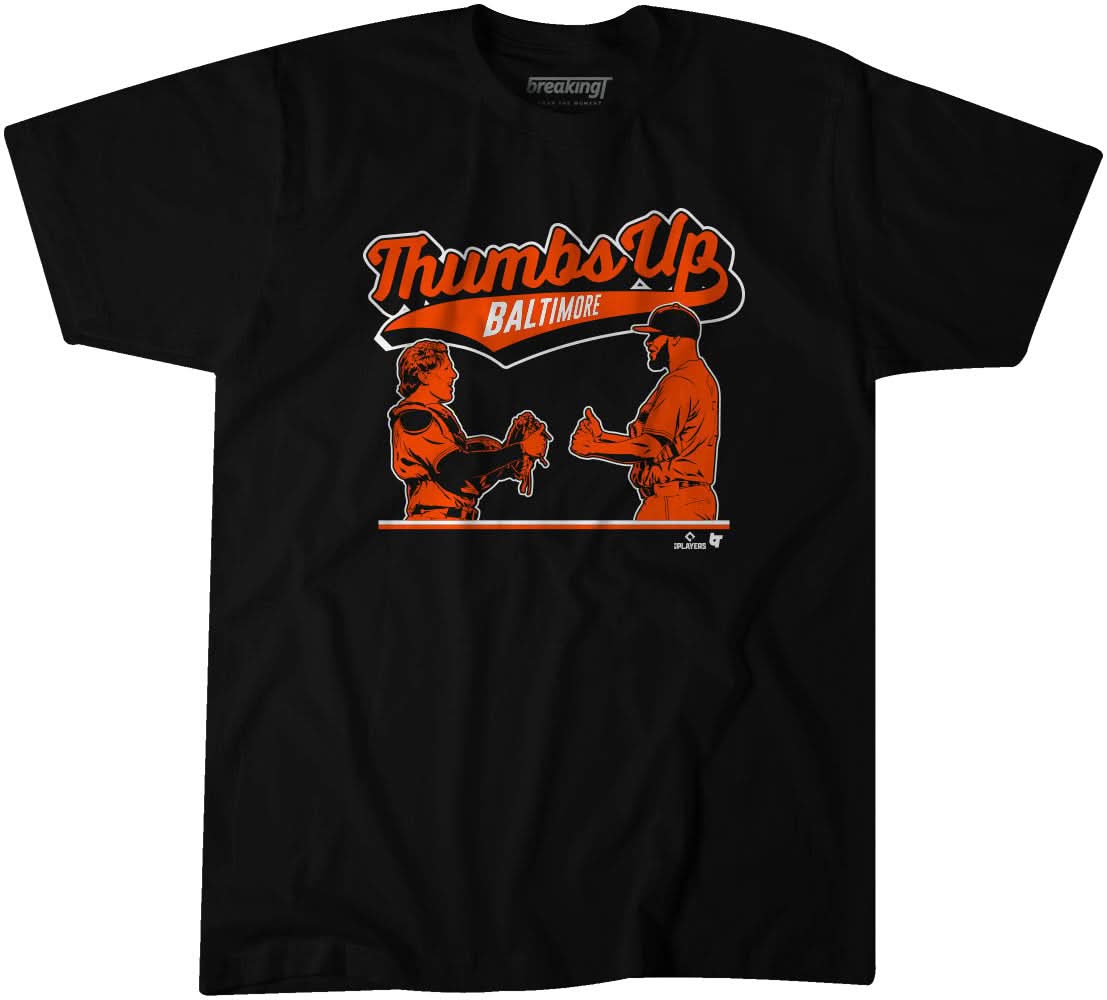 Adley Rutschman & Félix Bautista Thumbs Up is the epitome of an excellent wardrobe choice. Crafted from the finest grade of cotton, it offers a luxurious feel that is soft, lightweight, and comfortable.Designed with a classic style featuring a crew neckline, short sleeves, and an easy regular fit, it guarantees breathability and absorbency for enduring comfort and durability. Moreover, it comes in an array of colors to suit your preferences.