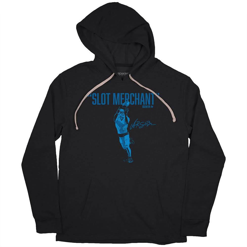 Amon-Ra St. Brown Slot Merchant is the epitome of an excellent wardrobe choice. Crafted from the finest grade of cotton, it offers a luxurious feel that is soft, lightweight, and comfortable.Designed with a classic style featuring a crew neckline, short sleeves, and an easy regular fit, it guarantees breathability and absorbency for enduring comfort and durability. Moreover, it comes in an array of colors to suit your preferences.