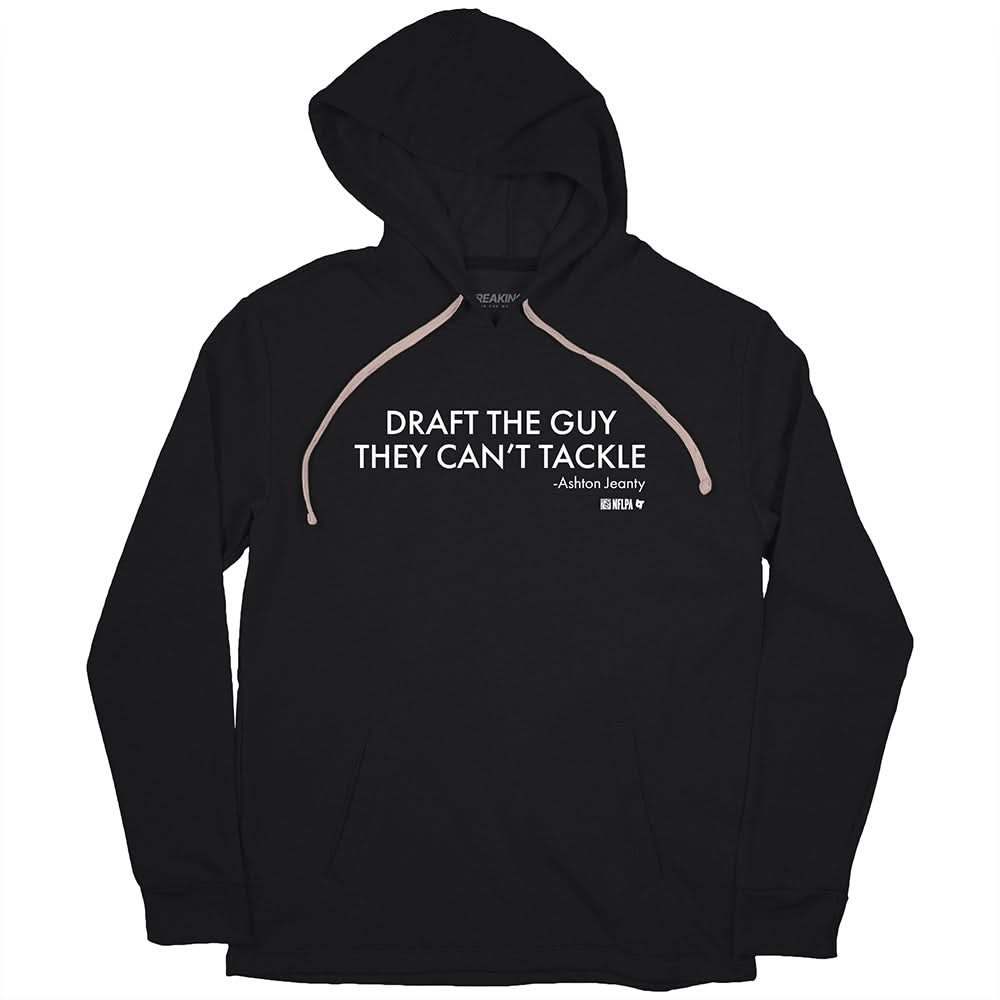 Ashton Jeanty Draft The Guy They Can't Tackle is the epitome of an excellent wardrobe choice. Crafted from the finest grade of cotton, it offers a luxurious feel that is soft, lightweight, and comfortable.Designed with a classic style featuring a crew neckline, short sleeves, and an easy regular fit, it guarantees breathability and absorbency for enduring comfort and durability. Moreover, it comes in an array of colors to suit your preferences.