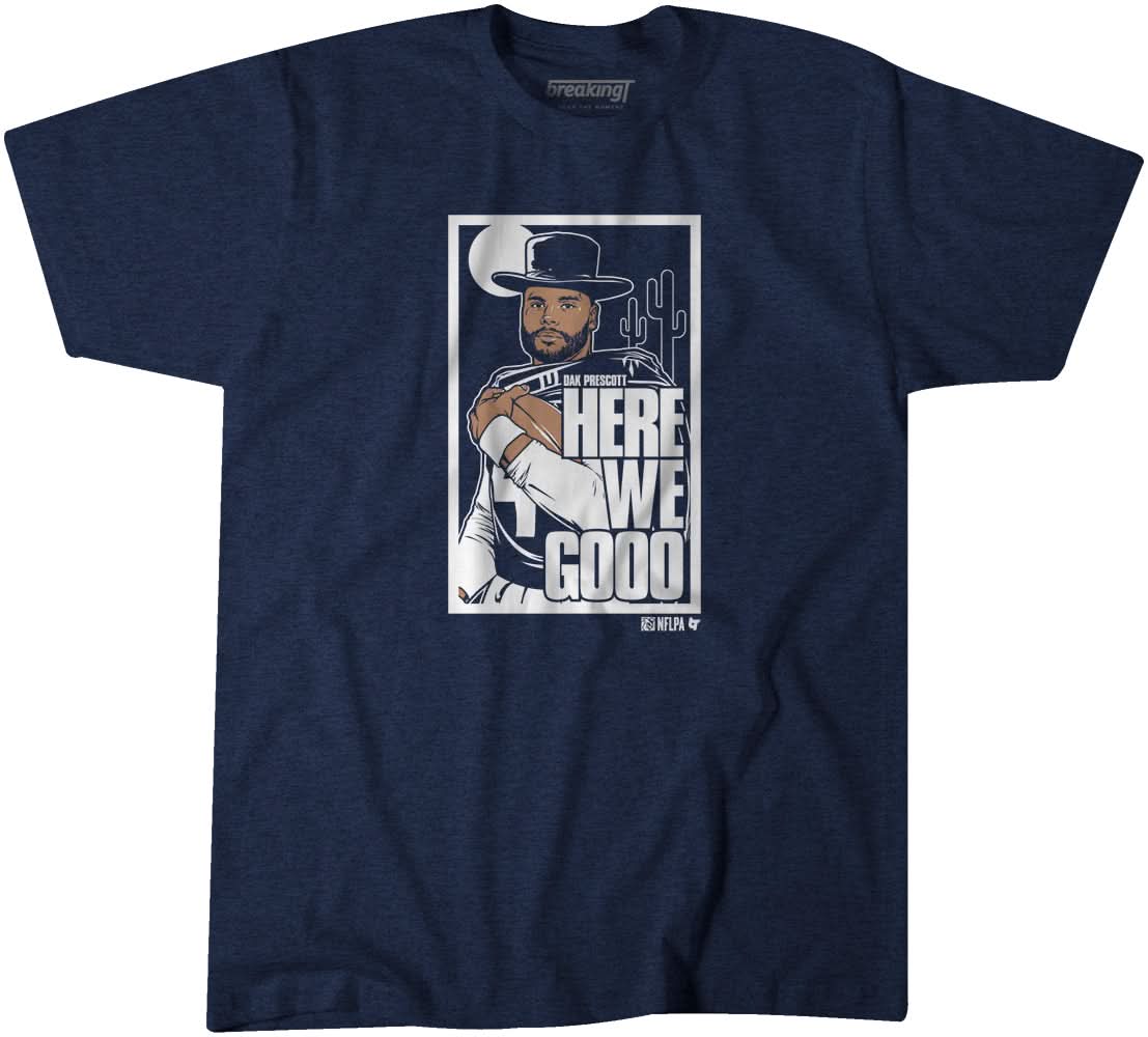 Are you on the lookout for a trendy and chic t-shirt? Look no further! Explore Dak Prescott Here We Go Poster right now! Our t-shirts boast a 100% cotton composition, ensuring you stay cool and comfortable throughout the day.