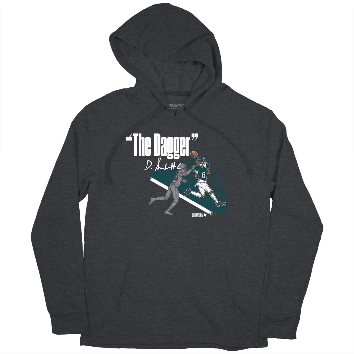 DeVonta Smith The Dagger is the epitome of an excellent wardrobe choice. Crafted from the finest grade of cotton, it offers a luxurious feel that is soft, lightweight, and comfortable.Designed with a classic style featuring a crew neckline, short sleeves, and an easy regular fit, it guarantees breathability and absorbency for enduring comfort and durability. Moreover, it comes in an array of colors to suit your preferences.