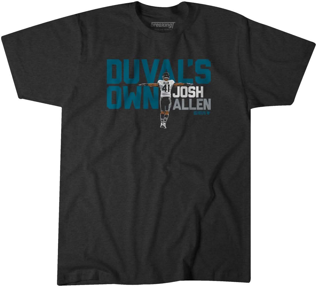 Are you on the lookout for a trendy and chic t-shirt? Look no further! Explore Duval's Own Josh Allen right now! Our t-shirts boast a 100% cotton composition, ensuring you stay cool and comfortable throughout the day.
