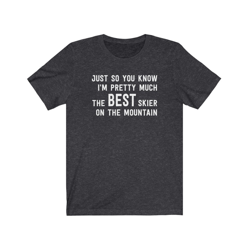 I'm Pretty Much The Best Skier On The Mountain T-Shirt is the epitome of an excellent wardrobe choice. Crafted from the finest grade of cotton, it offers a luxurious feel that is soft, lightweight, and comfortable.Designed with a classic style featuring a crew neckline, short sleeves, and an easy regular fit, it guarantees breathability and absorbency for enduring comfort and durability. Moreover, it comes in an array of colors to suit your preferences.