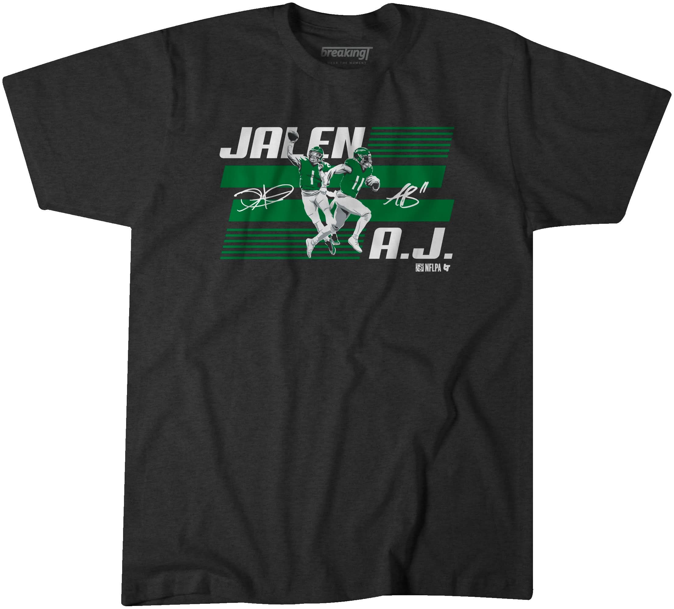 Are you on the lookout for a trendy and chic t-shirt? Look no further! Explore Jalen Hurts and A.J. Brown Dynamic Duo right now! Our t-shirts boast a 100% cotton composition, ensuring you stay cool and comfortable throughout the day.