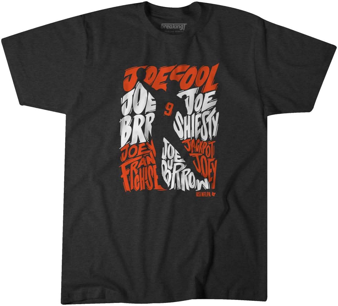 Joe Burrow Nicknames is the epitome of an excellent wardrobe choice. Crafted from the finest grade of cotton, it offers a luxurious feel that is soft, lightweight, and comfortable.Designed with a classic style featuring a crew neckline, short sleeves, and an easy regular fit, it guarantees breathability and absorbency for enduring comfort and durability. Moreover, it comes in an array of colors to suit your preferences.