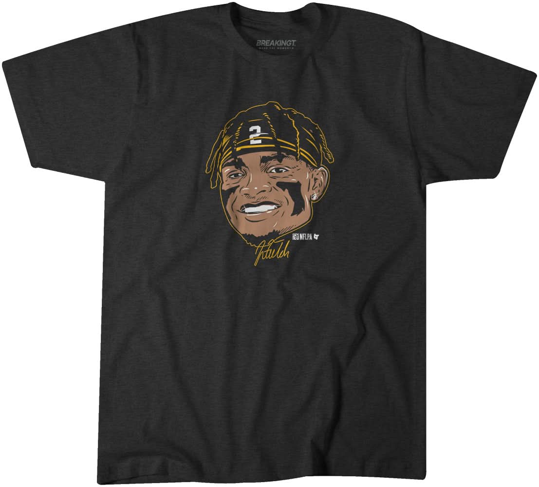 Justin Fields Pittsburgh Swag Head is the epitome of an excellent wardrobe choice. Crafted from the finest grade of cotton, it offers a luxurious feel that is soft, lightweight, and comfortable.Designed with a classic style featuring a crew neckline, short sleeves, and an easy regular fit, it guarantees breathability and absorbency for enduring comfort and durability. Moreover, it comes in an array of colors to suit your preferences.