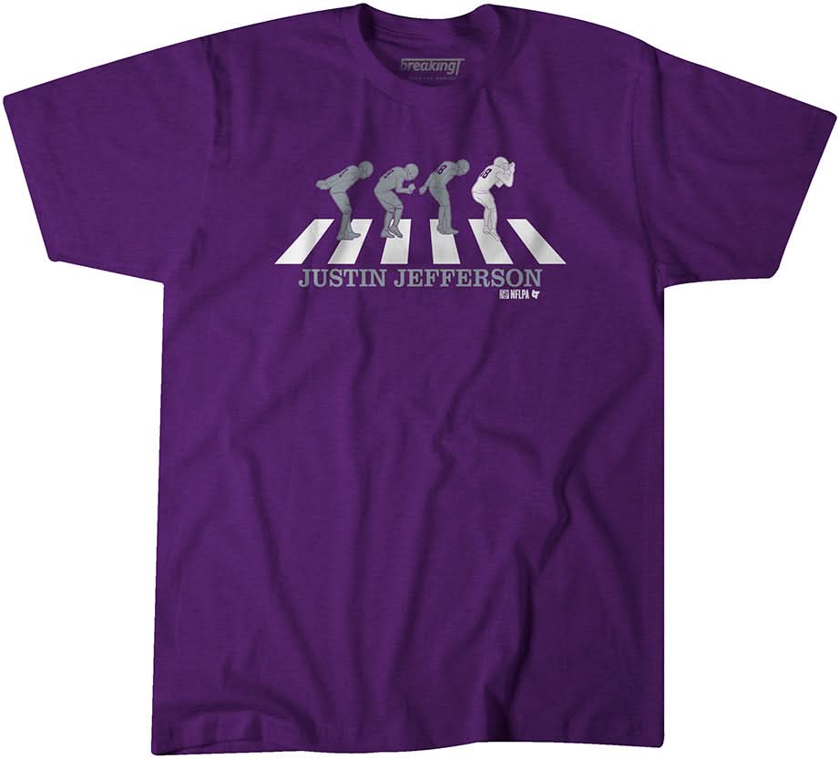 Justin Jefferson Abbey Road Griddy is the epitome of an excellent wardrobe choice. Crafted from the finest grade of cotton, it offers a luxurious feel that is soft, lightweight, and comfortable.Designed with a classic style featuring a crew neckline, short sleeves, and an easy regular fit, it guarantees breathability and absorbency for enduring comfort and durability. Moreover, it comes in an array of colors to suit your preferences.