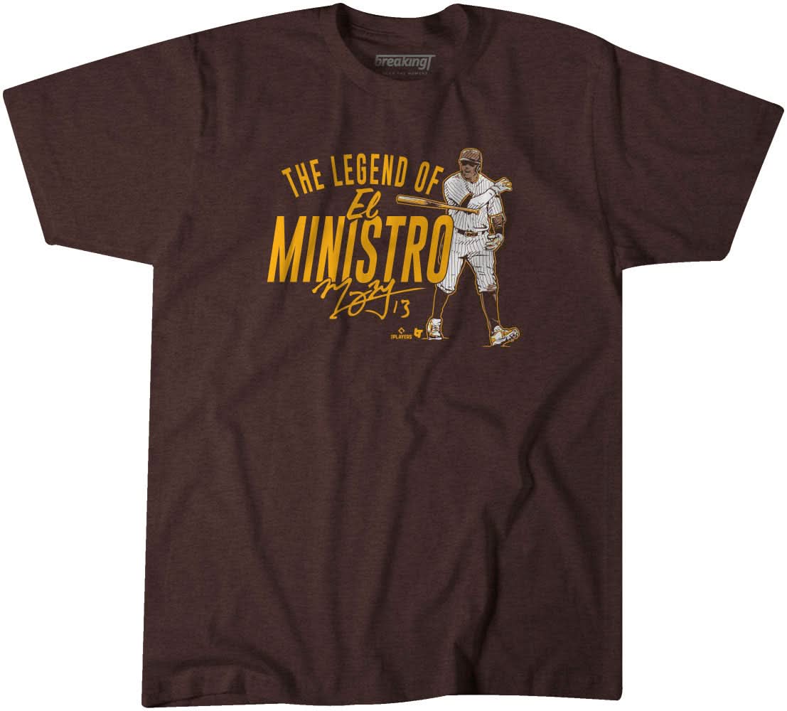 Manny Machado The Legend of El Ministro is the epitome of an excellent wardrobe choice. Crafted from the finest grade of cotton, it offers a luxurious feel that is soft, lightweight, and comfortable.Designed with a classic style featuring a crew neckline, short sleeves, and an easy regular fit, it guarantees breathability and absorbency for enduring comfort and durability. Moreover, it comes in an array of colors to suit your preferences.