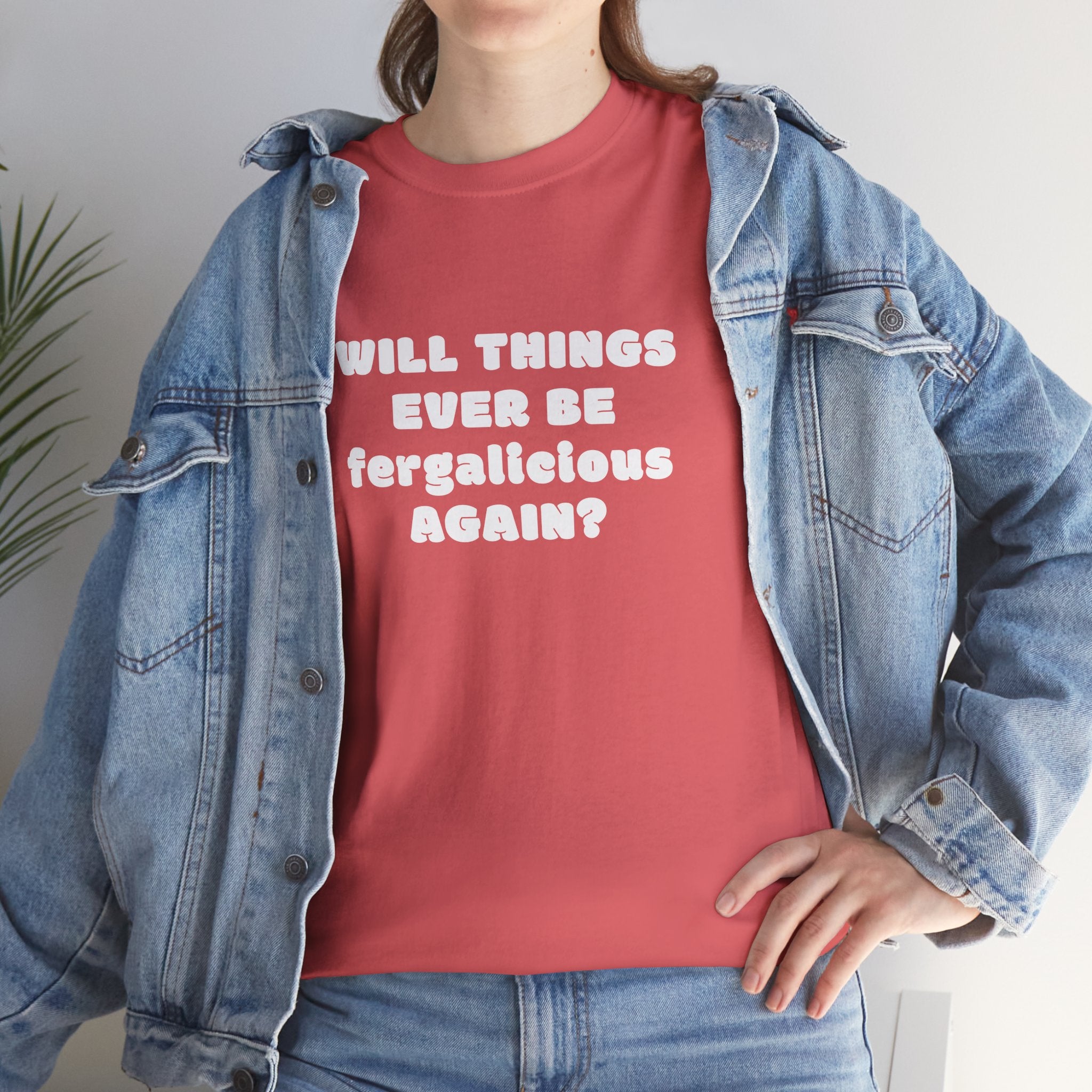Are you on the lookout for a trendy and chic t-shirt? Look no further! Explore Will Things Ever Be Fergalicious Again T-Shirt right now! Our t-shirts boast a 100% cotton composition, ensuring you stay cool and comfortable throughout the day.