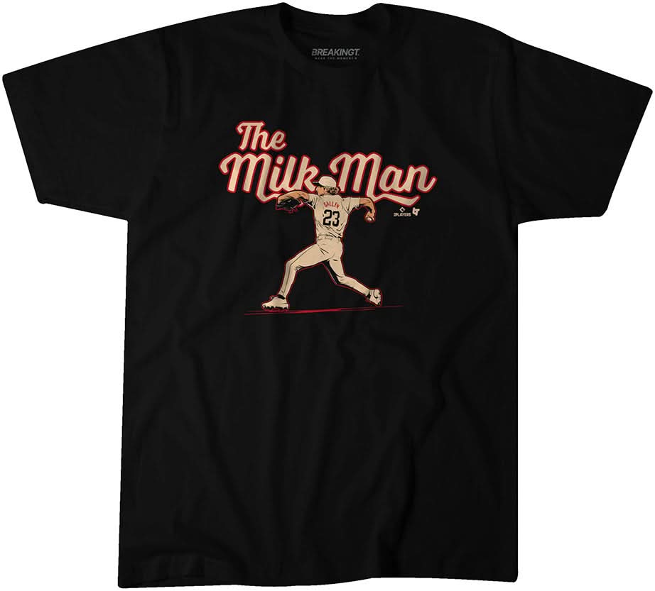 Zac Gallen The Milk Man is the epitome of an excellent wardrobe choice. Crafted from the finest grade of cotton, it offers a luxurious feel that is soft, lightweight, and comfortable.Designed with a classic style featuring a crew neckline, short sleeves, and an easy regular fit, it guarantees breathability and absorbency for enduring comfort and durability. Moreover, it comes in an array of colors to suit your preferences.